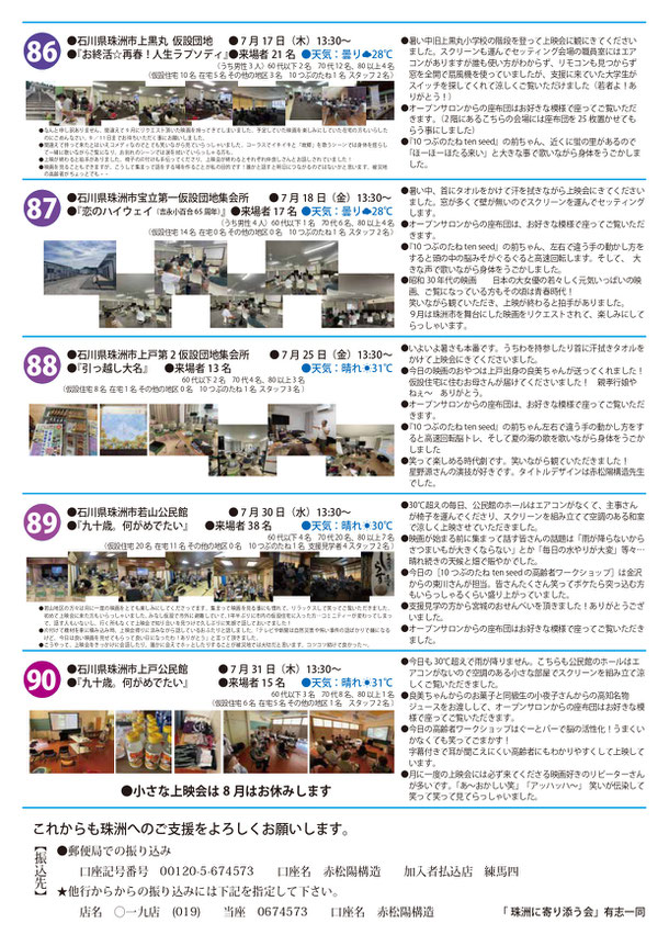 珠洲にて「小さな映画会」が開催されました。参宮橋商店会も協賛し、喜んで戴きました。